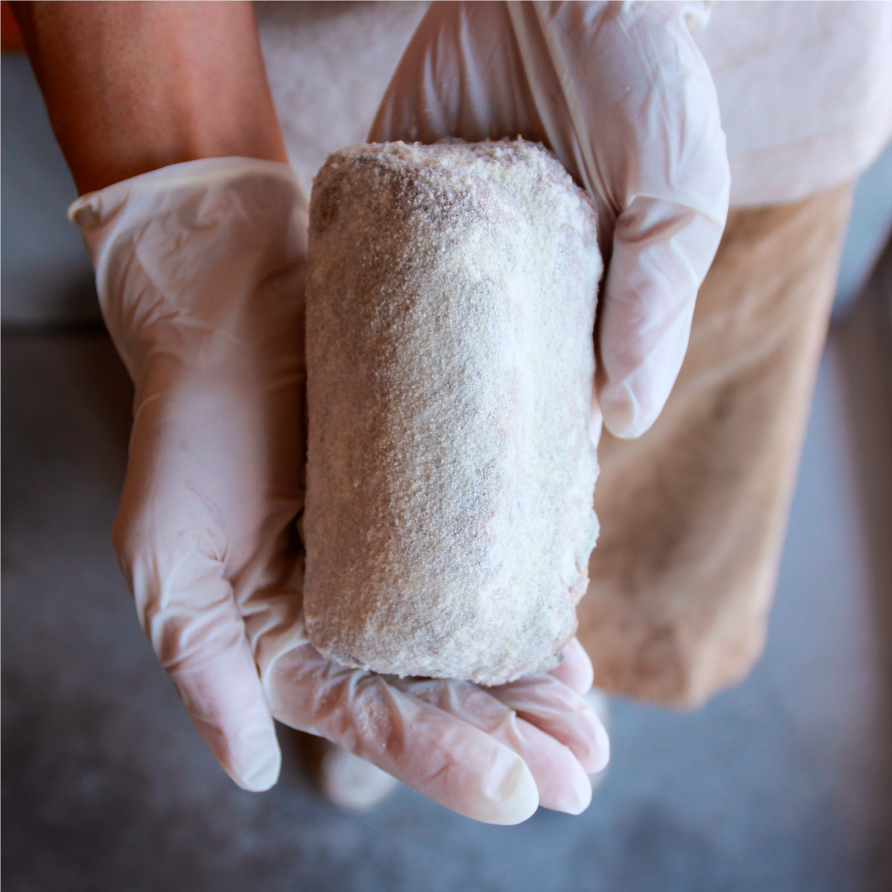 有機トンプソンレーズン、ハルミズキ(奈良/特別栽培)よつ葉発酵バター、モンスティル(北海道/三種類小麦ブレンド)、ノンホモ牛乳、伊予柑ピール(無添加/愛媛)、有機レーズン酵母、自家製ローマジパン、喜界島粗糖、国産ラム酒、有機アーモンドホール、有機カシューナッツ、有機カレンズレーズン、平飼い卵(奈良)、海塩(海の精)、有機バニラペースト、有機ナツメグ、有機カルダモン、麻炭