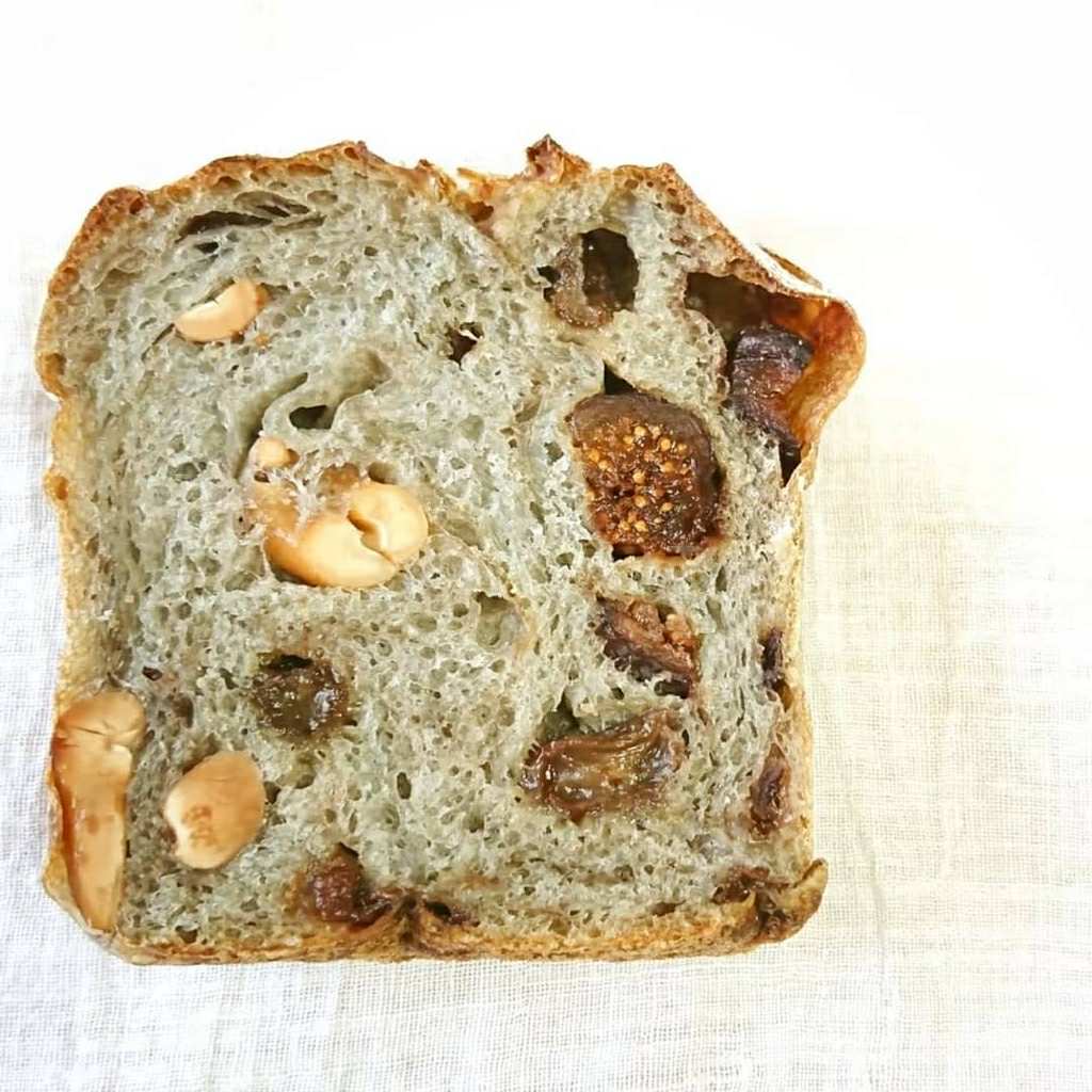 パン屋福笑オープン当初に開発したパン、有機赤ワインに漬けた有機イチジク、有機レーズン、有機カシューナッツを練り込みました。(アルコールは飛んでます)店主の思い入れのあるパンです。