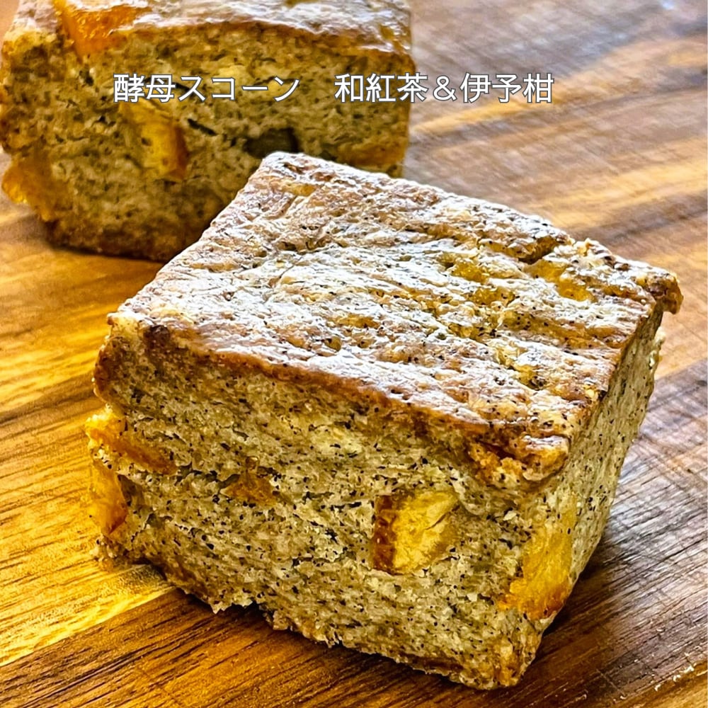 田原ナチュラルファームさんの和紅茶と無茶茶園さんの伊予柑ピールの酵母スコーン。